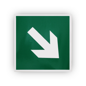 Самоклеящаяся наклейка E02-02 "Направляющая стрелка под углом 45" используется только вместе с другими эвакуационными знаками для указания направления движения (используется совместно с другими знаками пожарной безопасности).