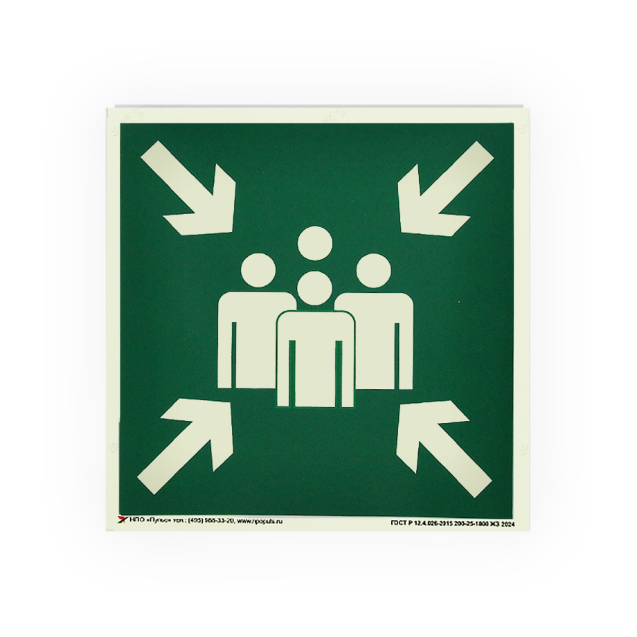 Знак E21 Пункт (место) сбора на самоклеящейся фотолюминесцентной плёнке, 200х200 НПО ПУЛЬС