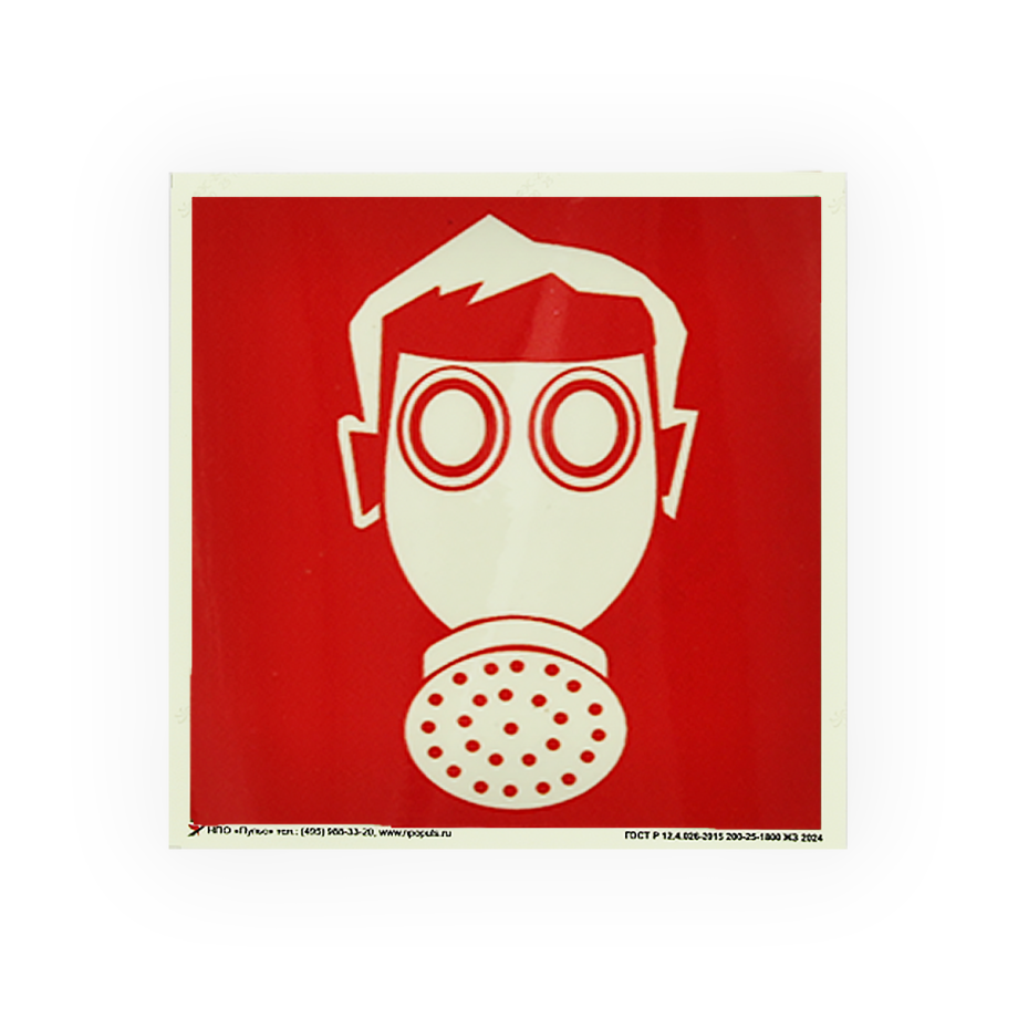 Знак F12 Место расположения средств индивидуальной защиты на самоклеящейся фотолюминесцентной плёнке, 100х100 НПО ПУЛЬС