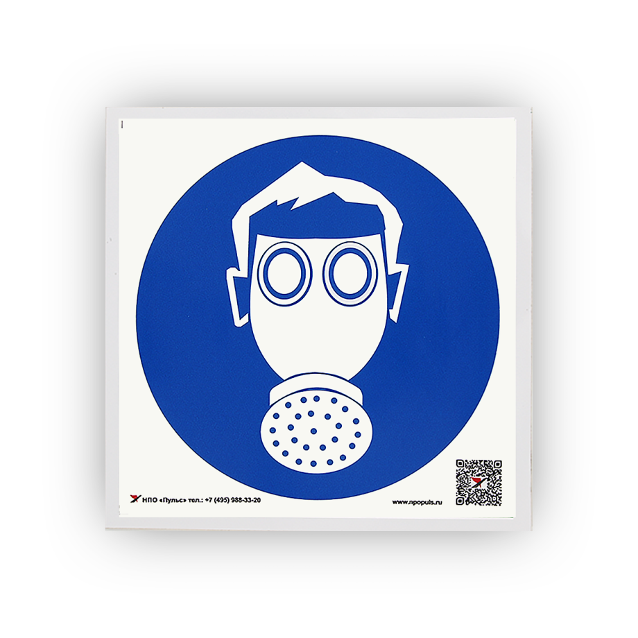 Знак M04 Работать в средствах защиты дыхания на самоклеящейся фотолюминесцентной плёнке, 200х200 НПО ПУЛЬС