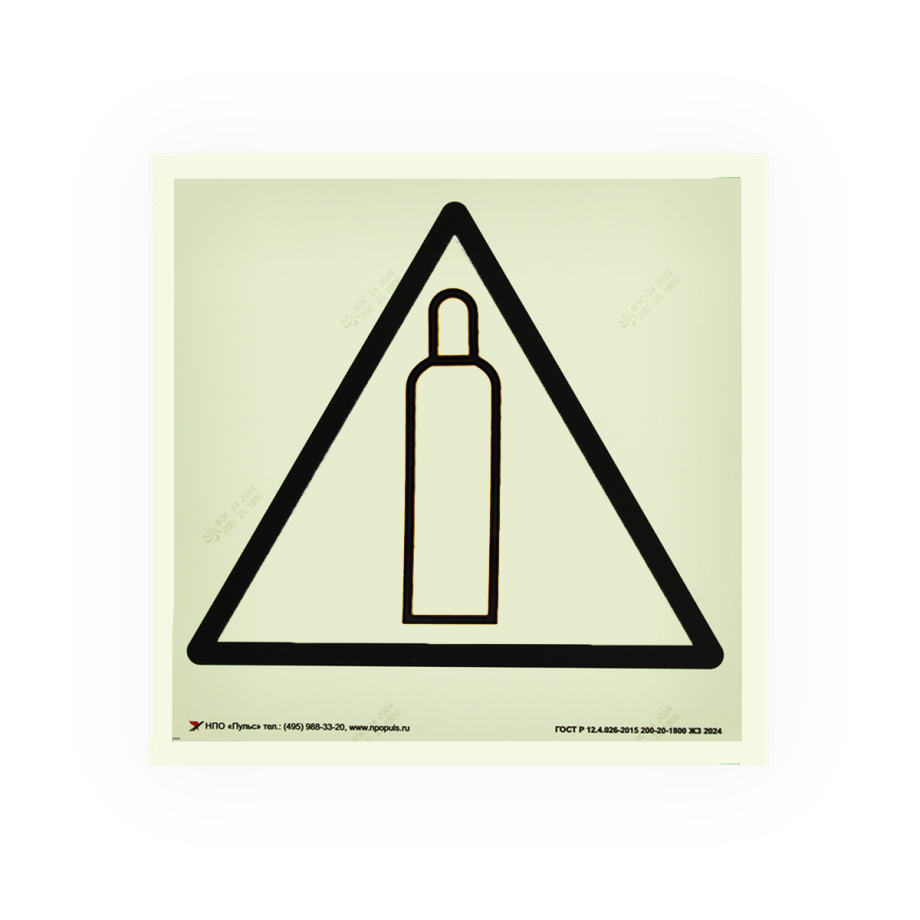 Знак W19 Газовый баллон на самоклеящейся фотолюминесцентной плёнке, 200х200 НПО ПУЛЬС
